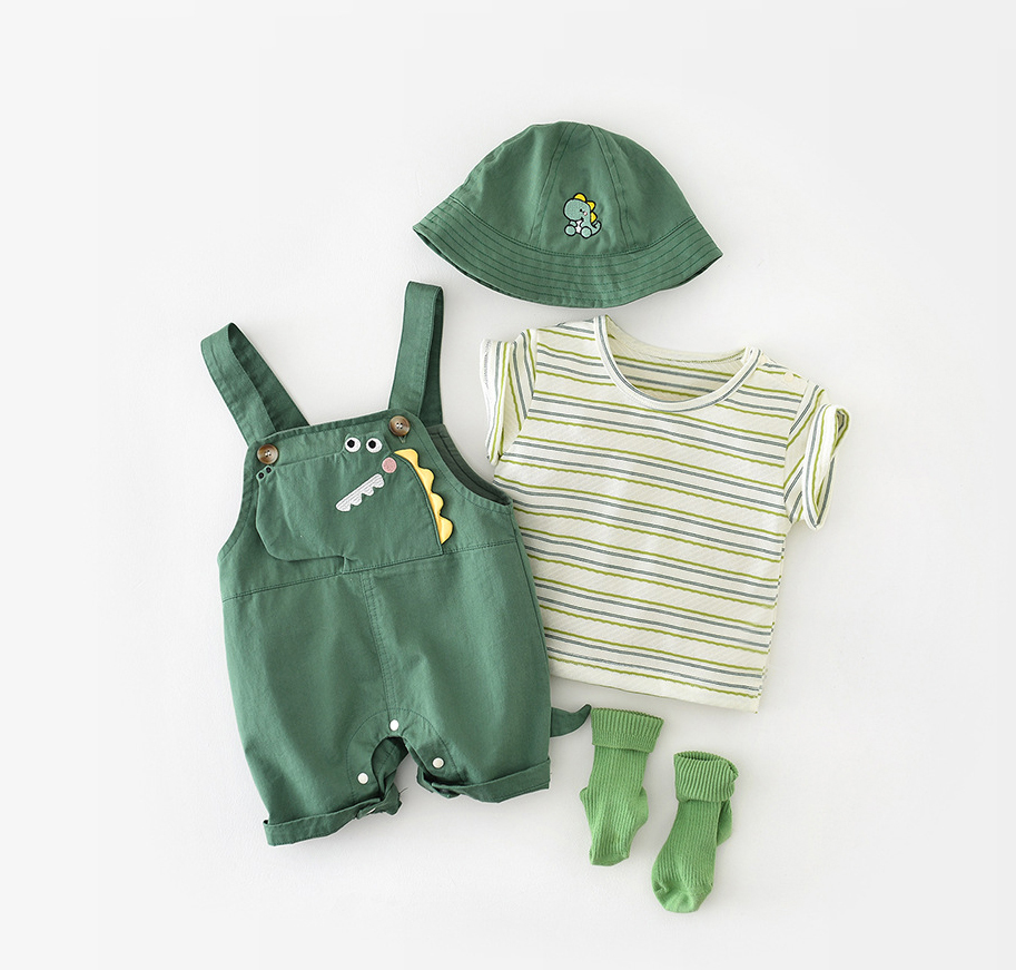 Set de 3 piese salopetă și pălărie Smart Dino