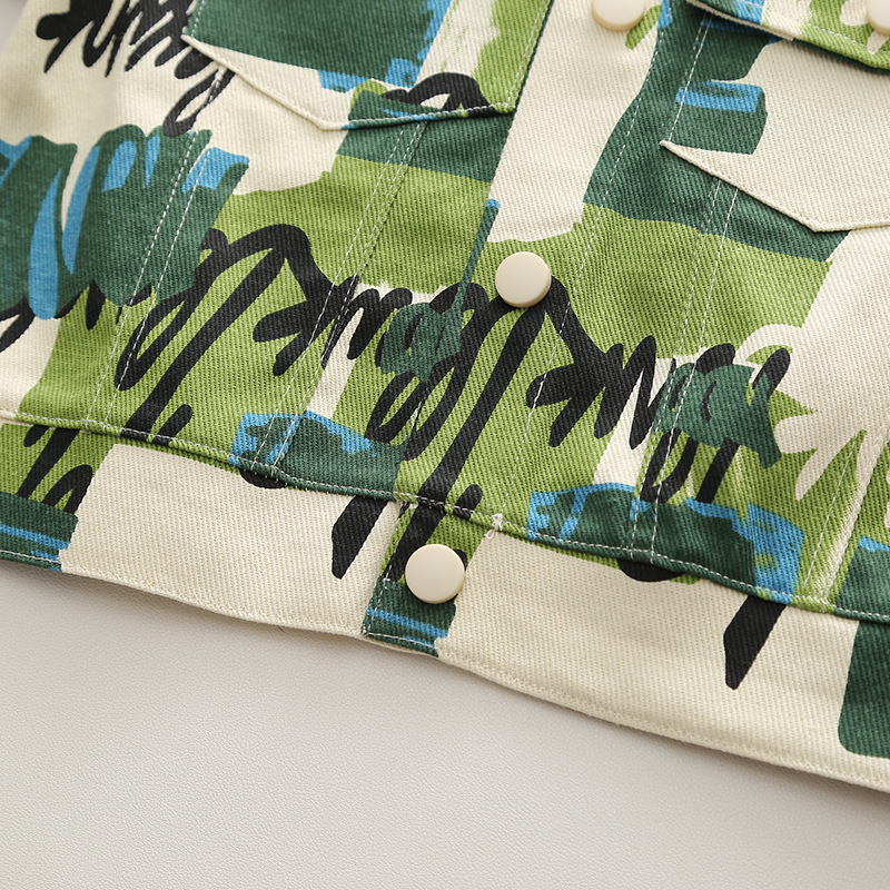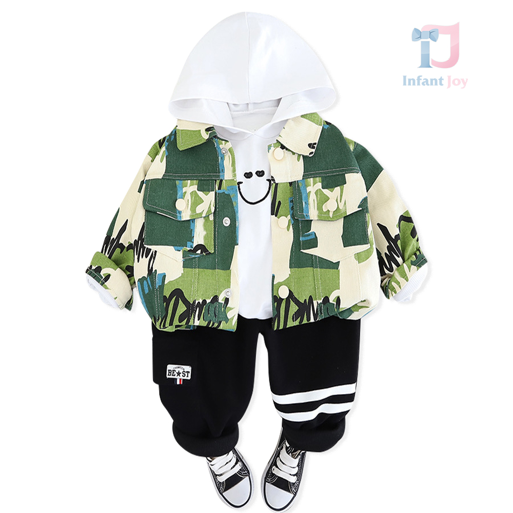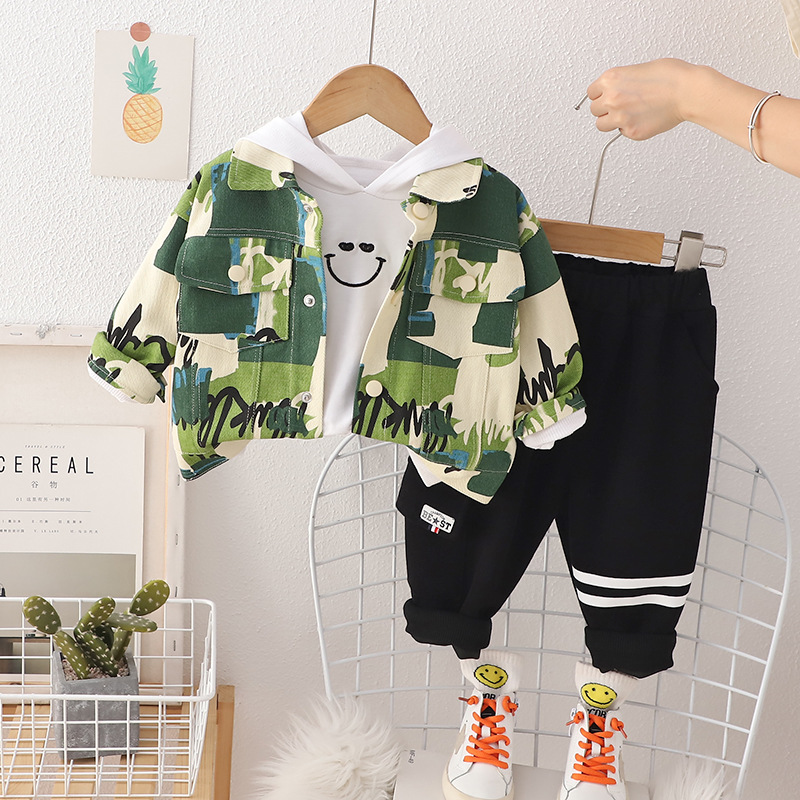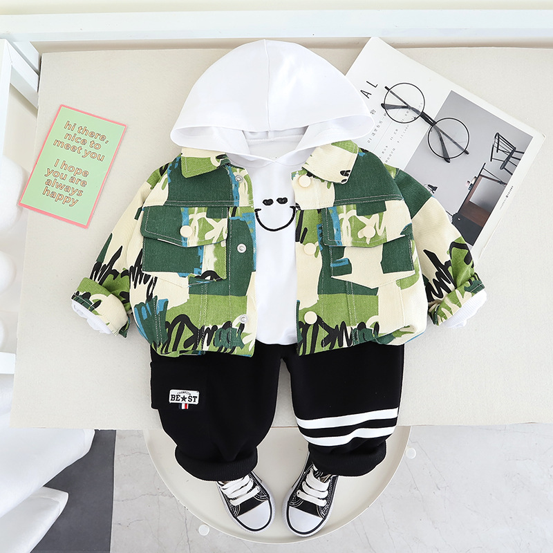 Set de 3 piese cu jachetă din denim și glugă Smile Camouflage