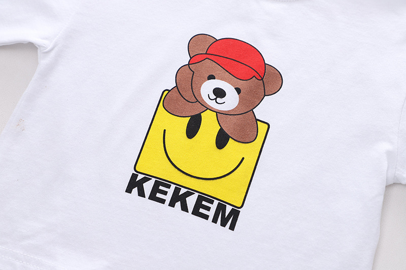 -Tricou alb din bumbac de înaltă calitate cu aplicație urs.
