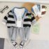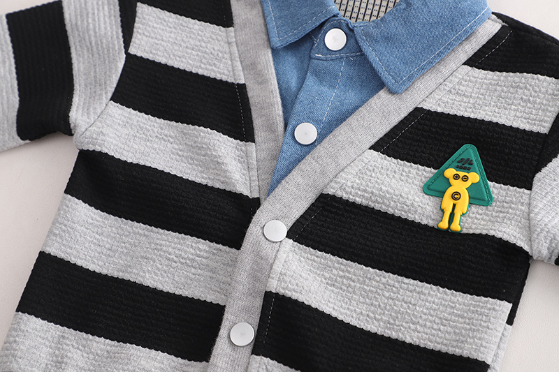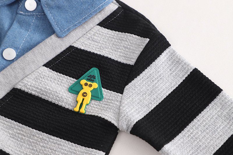 Set sportiv-elegant de 3 piese cu aplicație 3D, guler din denim și efect de vafe The Cool Kid
