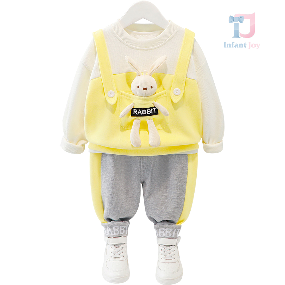 Set de 3 piese din tricot fin cu jucărie de plus Yellow Rabbit
