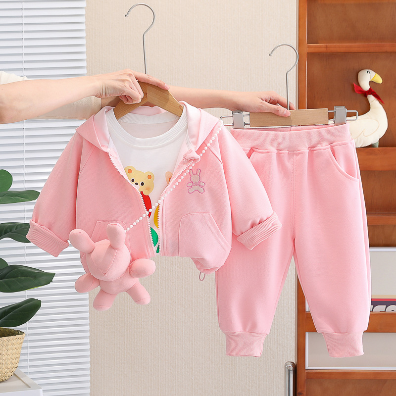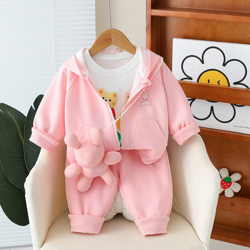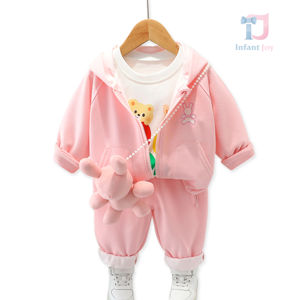 Set de 4 piese cu glugă, broderie și pandantiv Sille Toy Pink