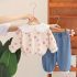 Set de 4 piese cu jachetă, cămașă cu guler tip Peter Pan și pantaloni din denim My Flower