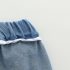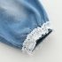 – Blugi tip „clopot” din denim clasic albastru, cu talie elastică, două buzunare și tiv decorat cu dantelă – accent romantic.
