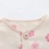 – Jachetă într-o nuanță delicată crem, din bumbac. Model presărat cu floricele colorate care evidențiază croiala. Decolteu rotund, închidere cu nasturi pe toată lungimea și două buzunare frontale funcționale. Mâneci lungi cu manșete elastice pentru confort.