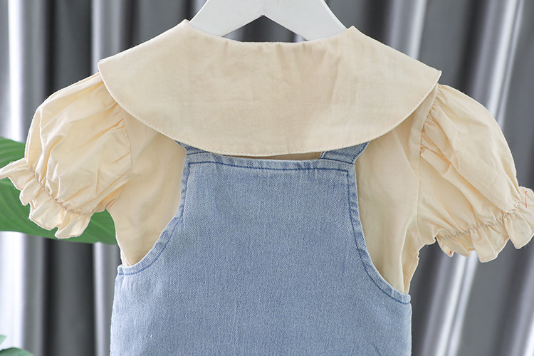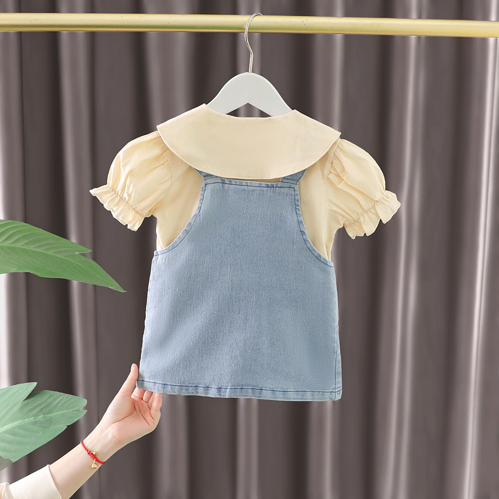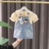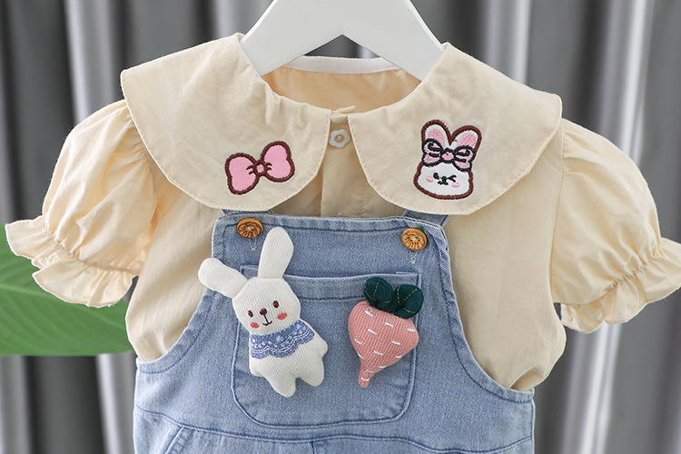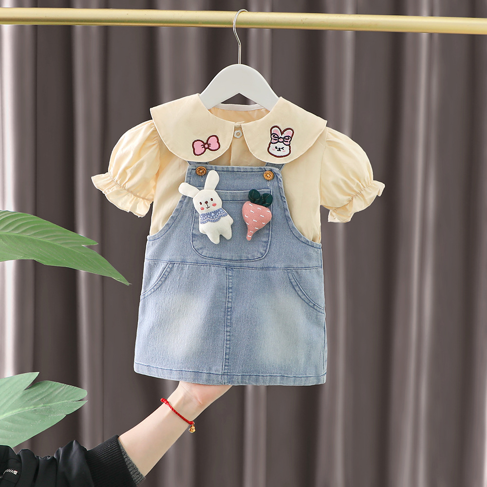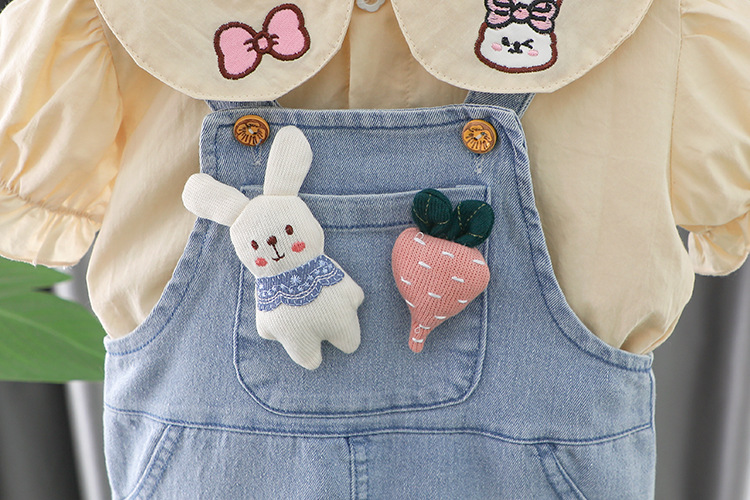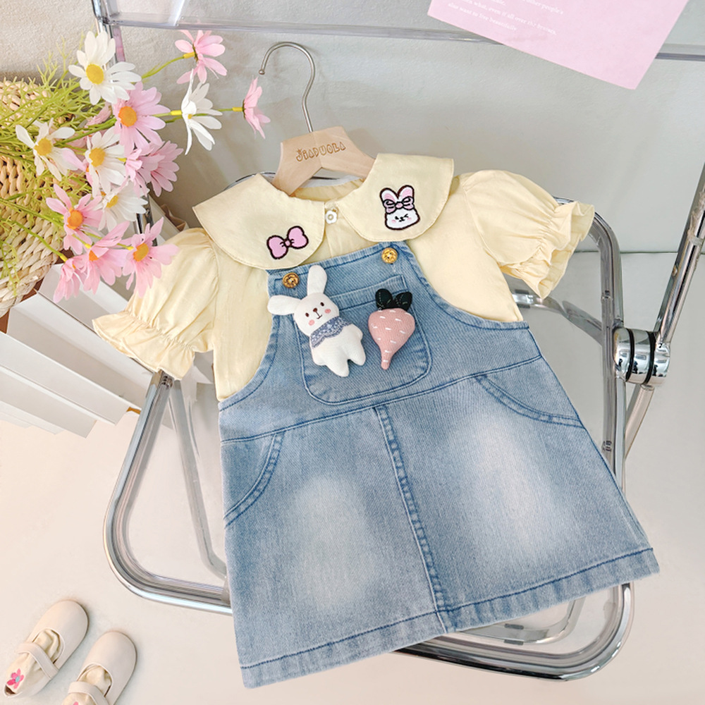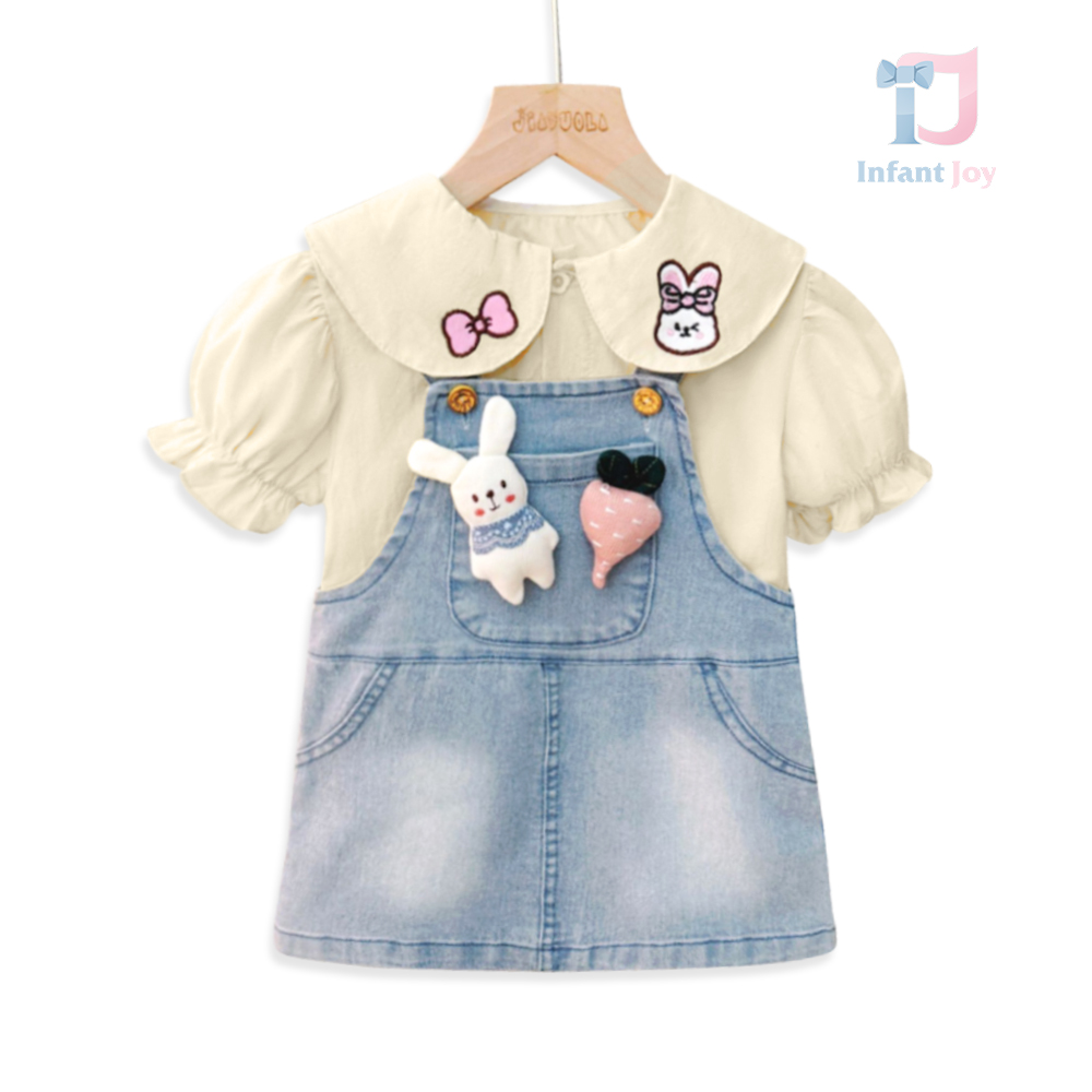 Set de 4 piese cu rochie din denim și broșe Super Bunny Beige
