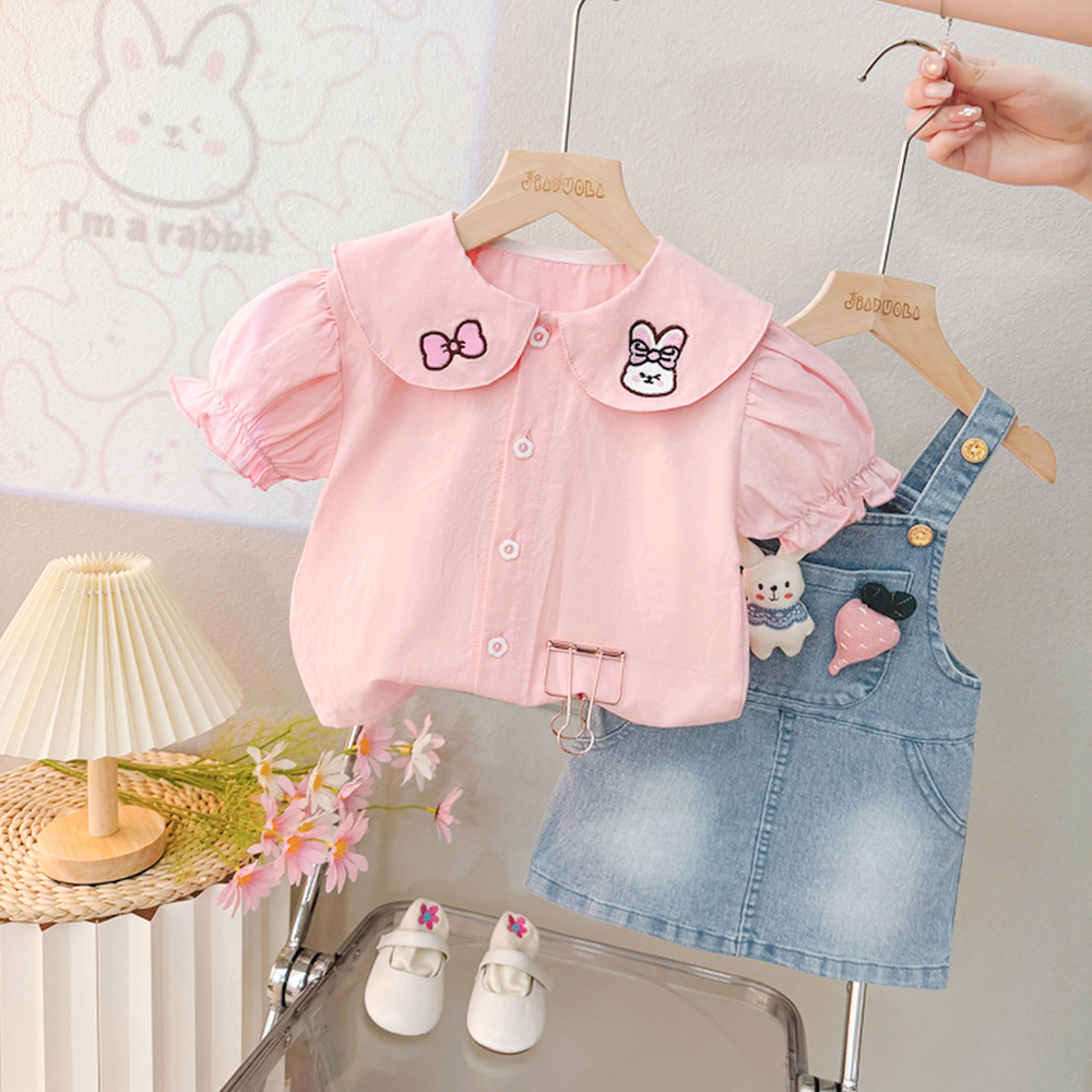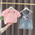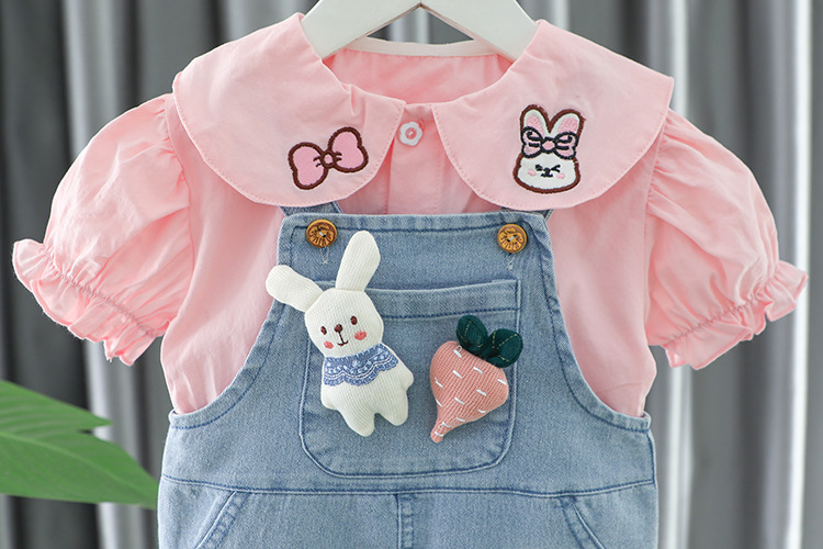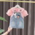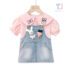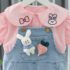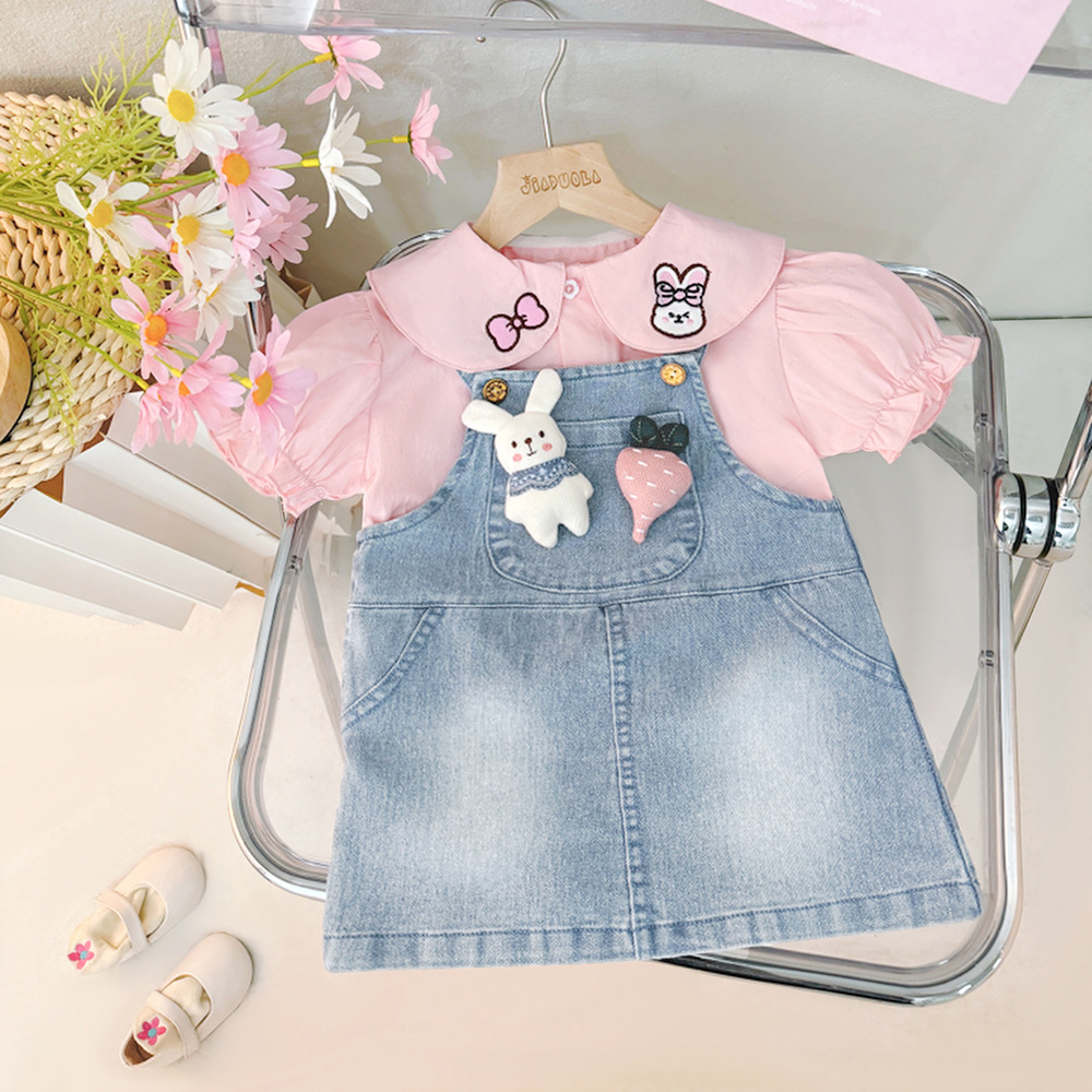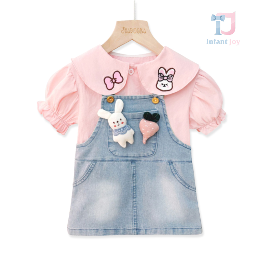 Set de 4 piese cu rochie din denim și broșe Super Bunny Pink