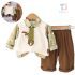 Set de 4 piese cu vestă cu închidere deosebită, cămașă cu imprimeu forestier, cravată detașabilă și pantaloni Mushroom Scout Beige