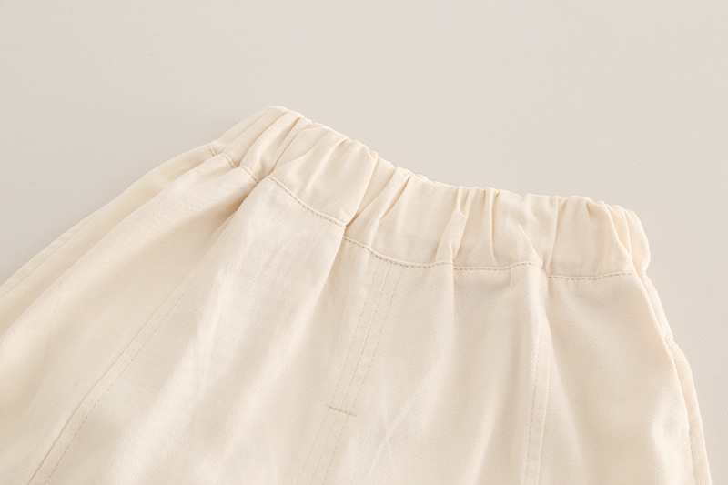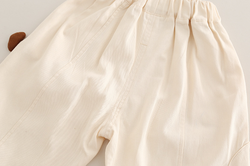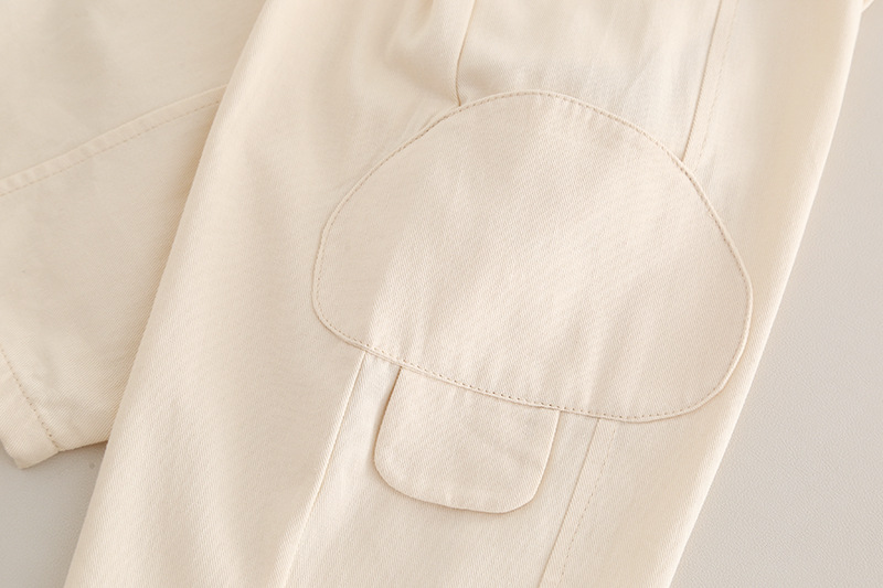 – Pantalon din bumbac, în bej deschis, cu talie elastică și detalii 3D în ton cu partea de sus.