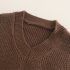 – Vestă tricotată într-o nuanță caldă de maro, cu decolteu în V, care se poartă peste cămașă și creează un aspect clasic, complet.