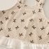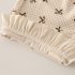 – Vestă în ton bej, cu un motiv fin de fundițe mici, realizată dintr-un material moale și plăcut la atingere. Partea de jos este finisată cu volănașe care oferă un plus de farmec.