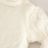 – Bluză cu mânecă lungă, într-o nuanță delicată de crem, confecționată din material de înaltă calitate cu textură ușor ribată. Modelul are mâneci bufante spectaculoase din tulle fin și transparent, care adaugă volum și un aspect extrem de delicat.