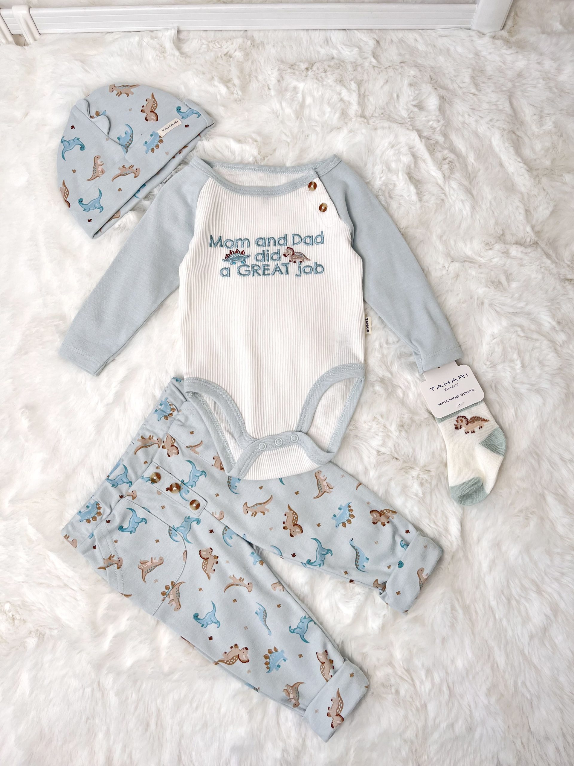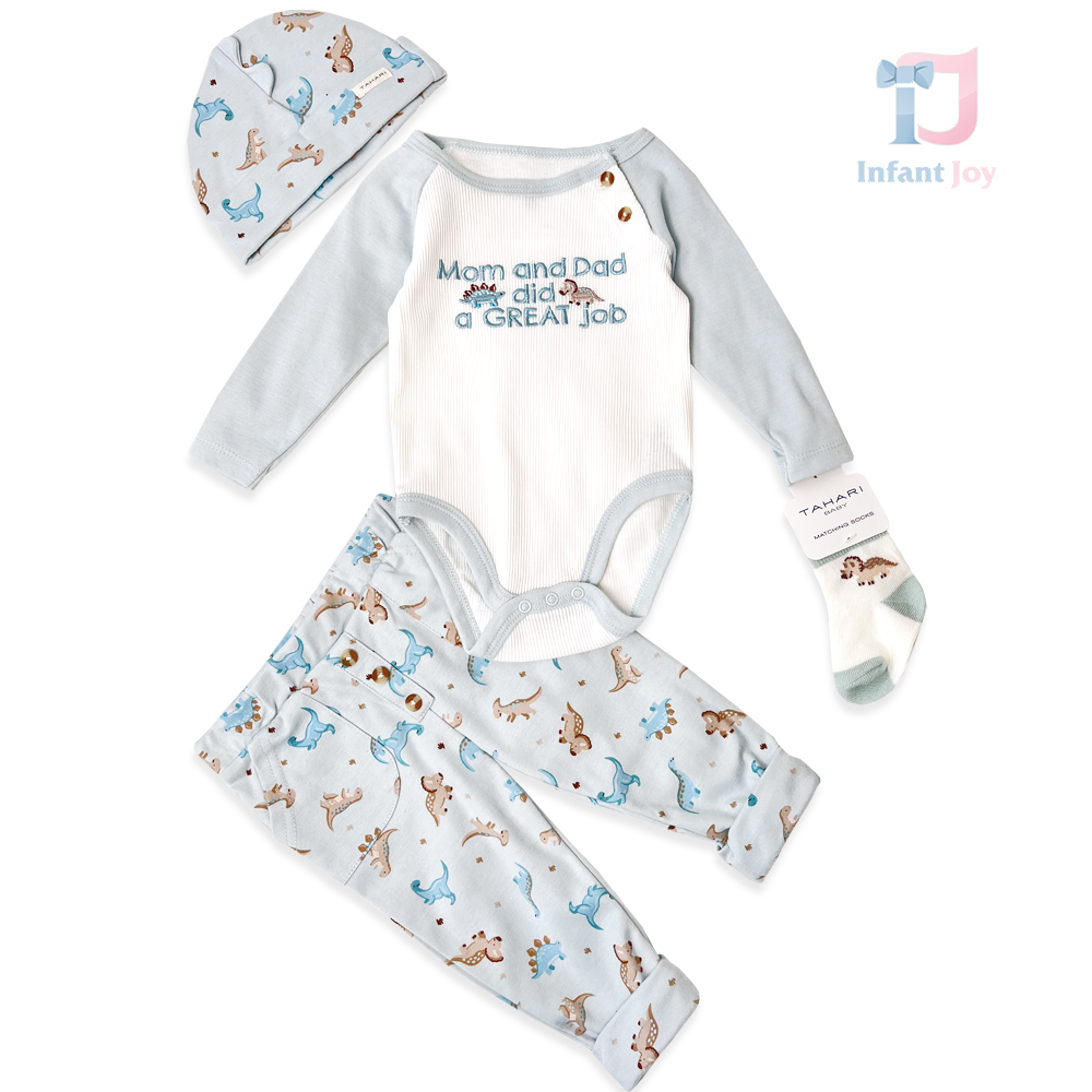 🦕 Set delicat și extrem de drăguț din 4 piese pentru bebeluși – creat pentru confort, căldură și o dispoziție jucăușă.