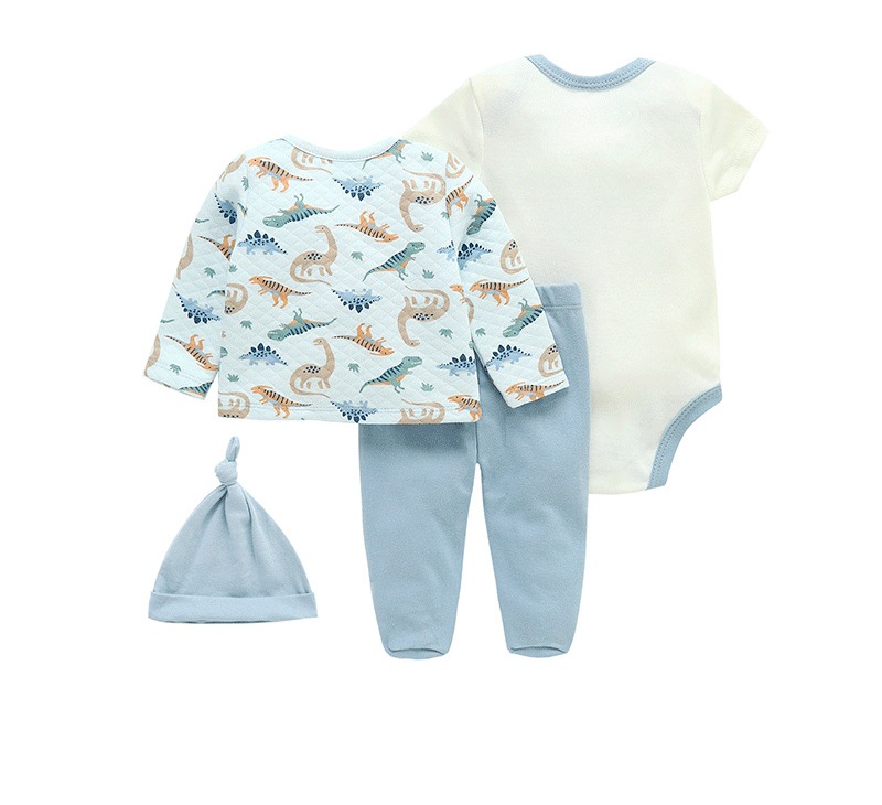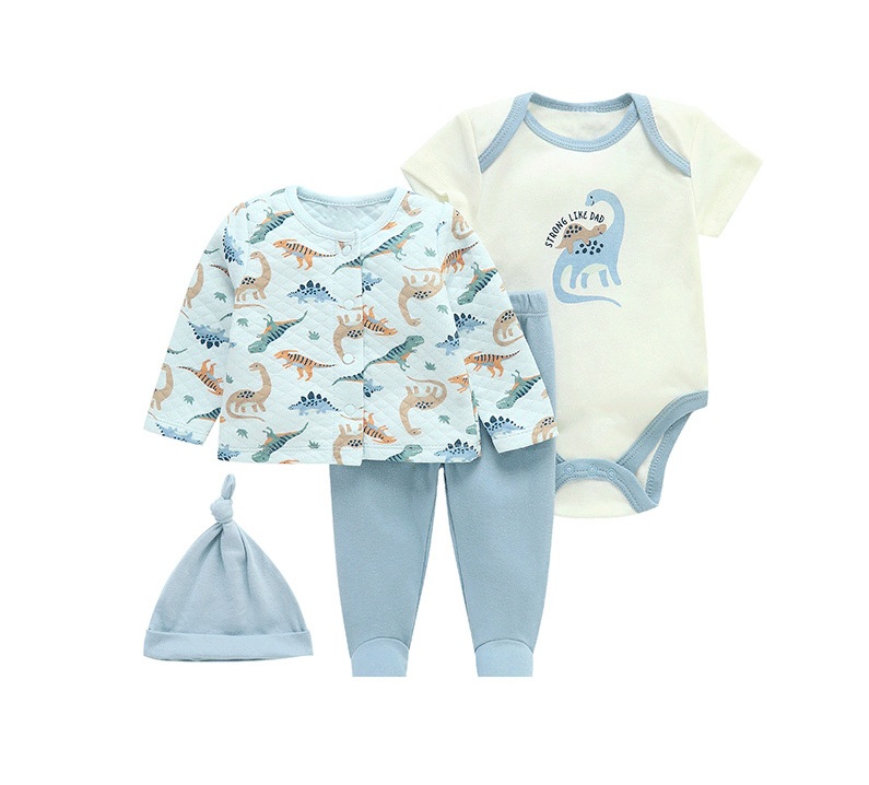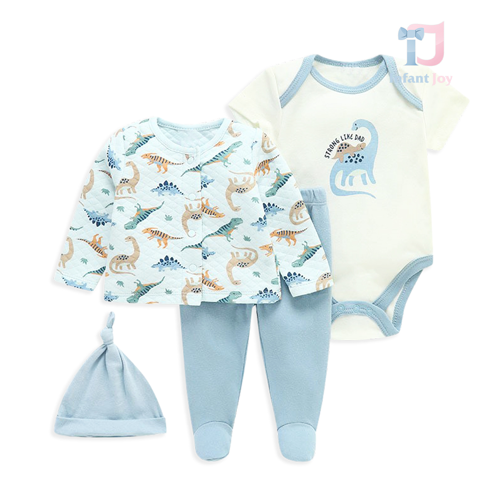 💙 Set proaspăt și extrem de drăguț din 4 piese pentru bebeluși – creat pentru confort, căldură și o dispoziție jucăușă, cu tematică de dinozauri. Alegerea perfectă pentru fiecare zi, somn și plimbări.