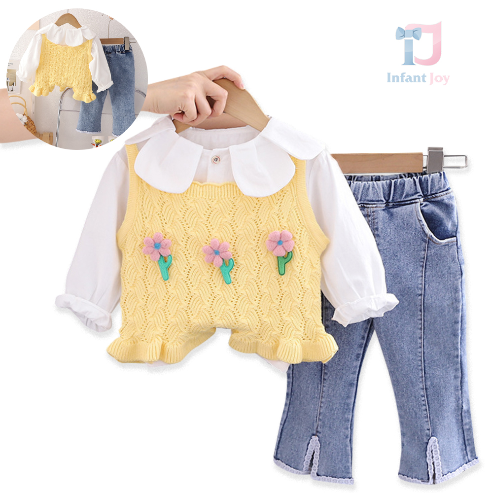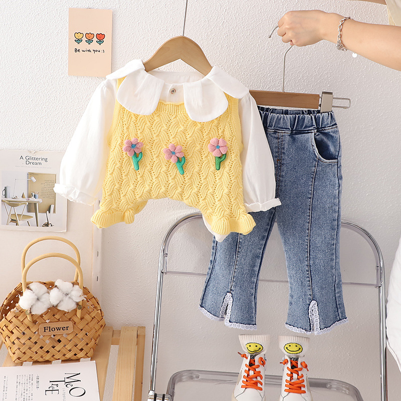Set premium de 4 piese cu guler spectaculos și vestă tricotată cu flori 3D Miss Gardenia