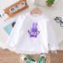 – Bluză moale, de culoare albă, cu un design colorat pe partea frontală, reprezentând un iepuraș.