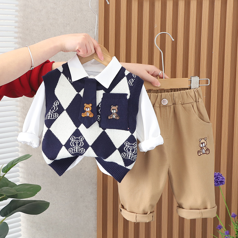 Set sportiv-elegant de 4 piese cu cravata Rhombus Bear