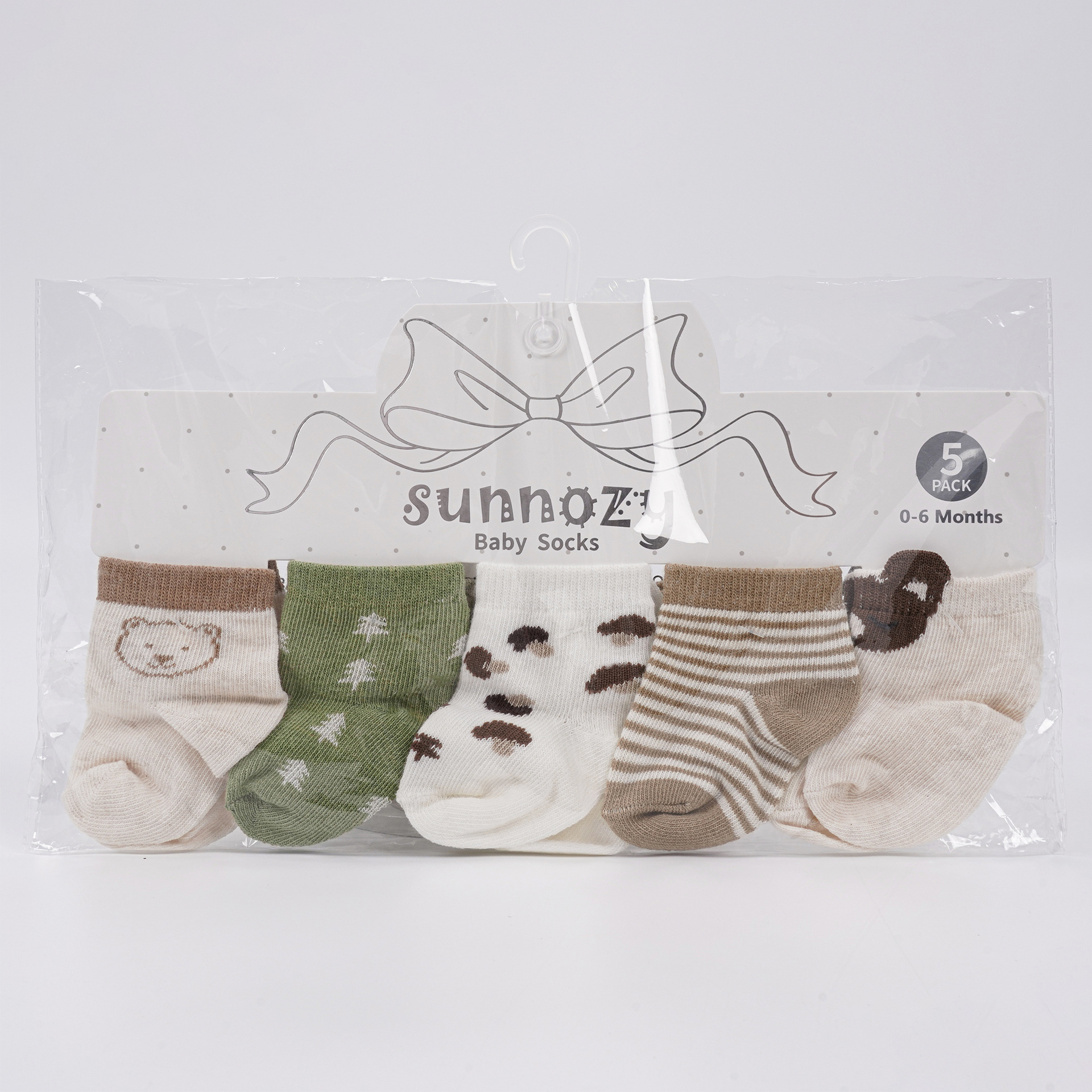 🧦 Set dulce și stilat de 5 perechi de șosete pentru bebeluși în tonuri pământii și naturale – create pentru confort, căldură și un aspect adorabil încă din primele zile 🤎 Combinația perfectă între practic și delicatele motive pentru copii
