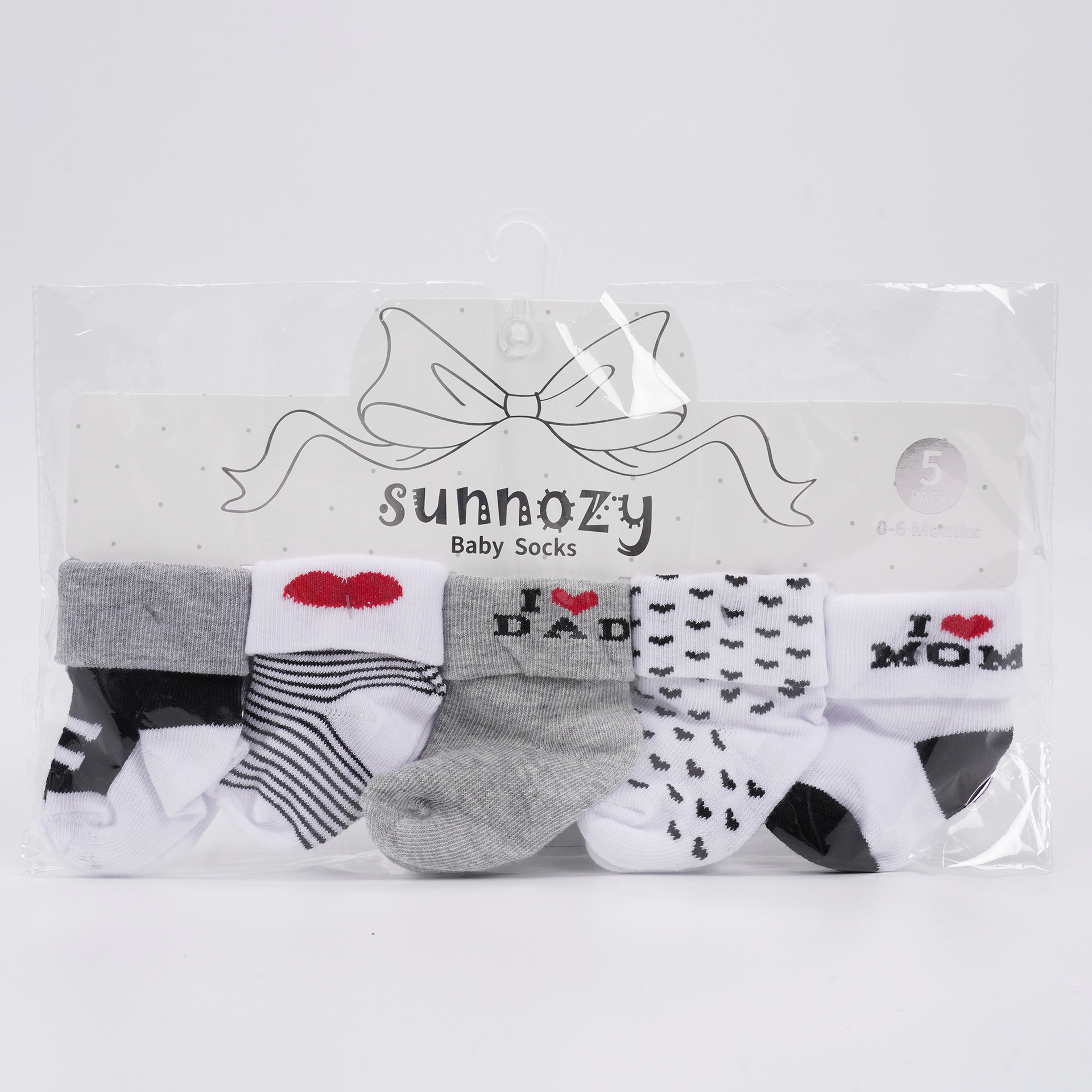 🧦 Set dulce și jucăuș din 5 perechi de șosete pentru bebeluși în gamă roz-alb – creat pentru a aduce bună dispoziție, confort și multe zâmbete. 🩶 Combinația perfectă între practicitate și design ludic cu mesaj.