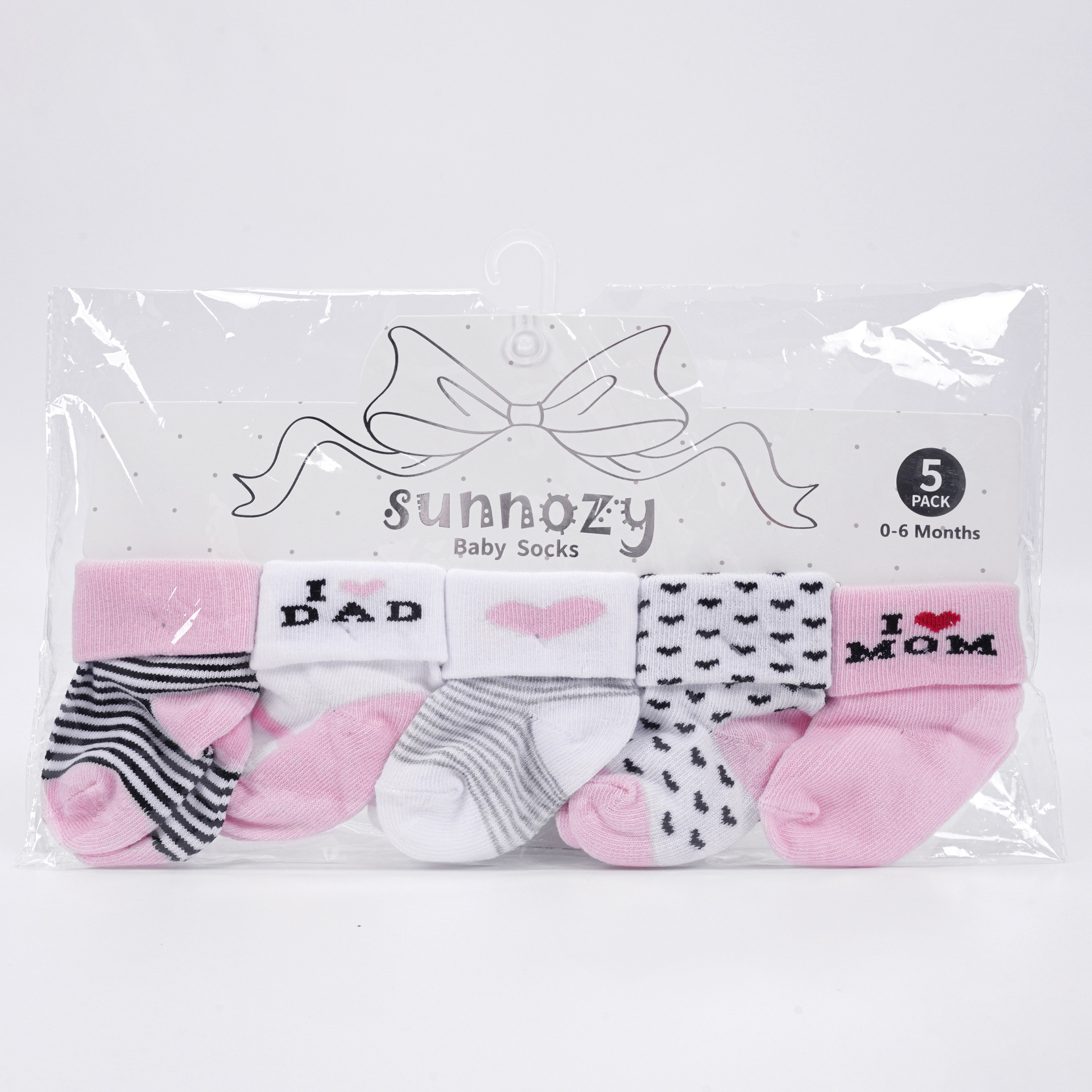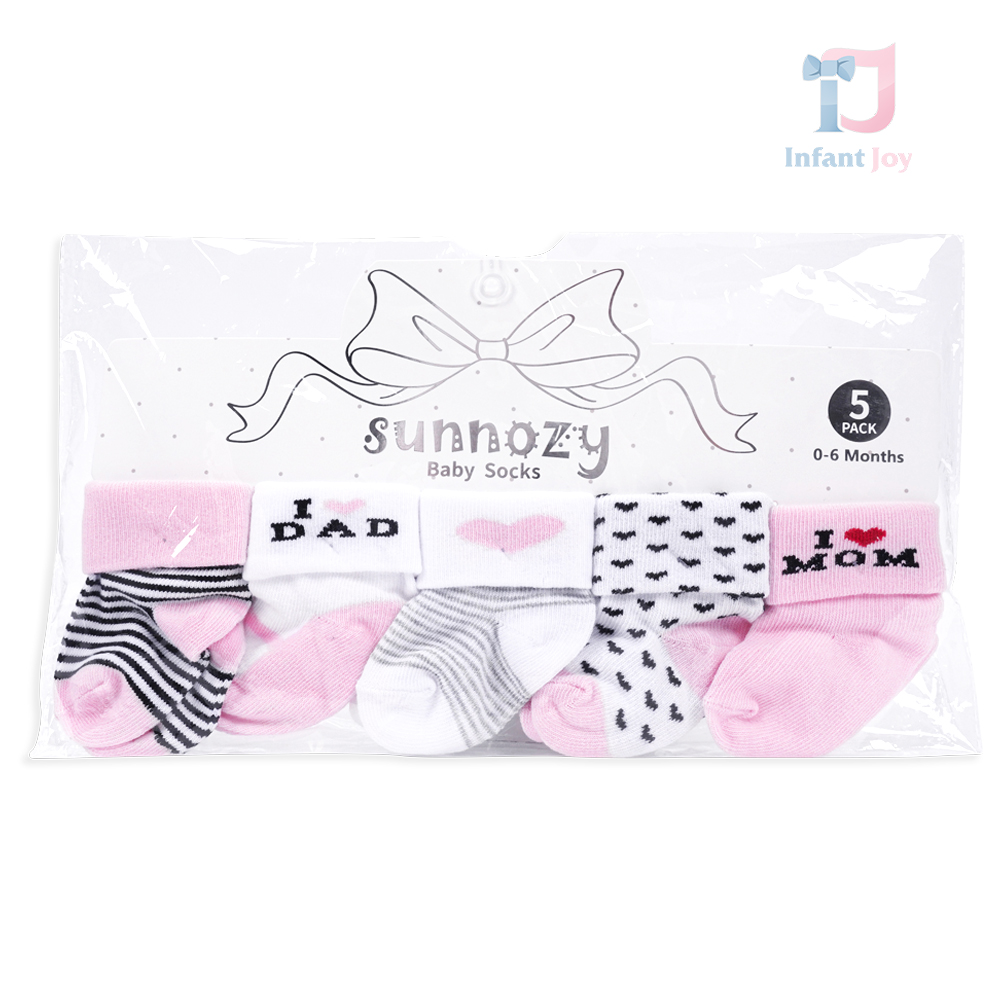 🧦 Set dulce și jucăuș de 5 perechi de șosete pentru bebeluși în gamă roz-alb – creat pentru a aduce bună dispoziție, confort și multe zâmbete. 🩷 Combinație perfectă de practică și design jucăuș cu mesaj