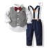 ✌Părți componente: vestă, cămașă, papion, pantaloni, suspensii