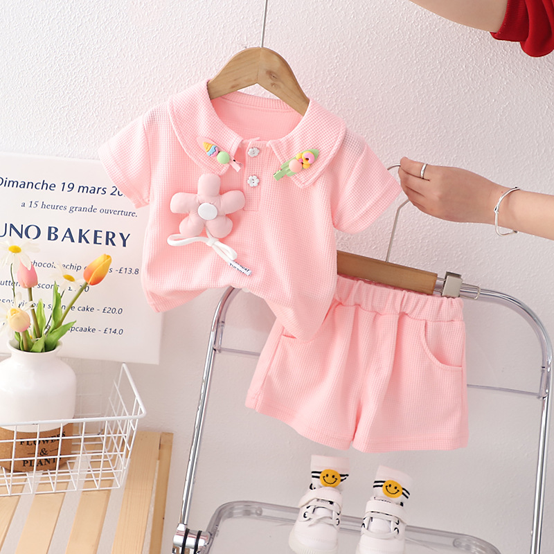 Set de 5 piese cu efect de vafe, elemente 3D, broșă și ac de păr Pink Flower and Tips
