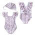 Set de costum de baie cu volane pe umeri, bretele încrucișate și pălărie Salted Lavender