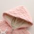 -Geacă/hanorac de culoare roz delicat, confecționat din material vătuit de înaltă calitate, cu cusături elegante. Model cu glugă și închidere parțială în față cu fermoar, completat cu manșete ripsate pentru a menține căldura. Decorat cu un buzunar decorativ în partea din față și un element 3D detașabil în formă de iepuraș, care adaugă un accent jucăuș și elegant.