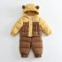 ❄️Un adorabil costum de iarnă tip eschimos, într-o combinație caldă de galben miere și maro ciocolatiu – creat pentru confort și protecție în zilele reci!