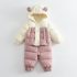Set de schi din 2 piese cu geacă cu glugă, urechiușe 3D, broderie și pantaloni Pinky Hug