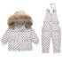 • Set de schi premium impermeabil de 2 piese cu salopetă și geacă cu glugă cu blană naturală Snow Titan White