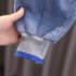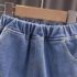 -Панталон, изработен от висококачествен деним, с ластик на талията и крачолите, две джобчета, открояващи се шевове в предната част + пришита емблема и джобче отзад.