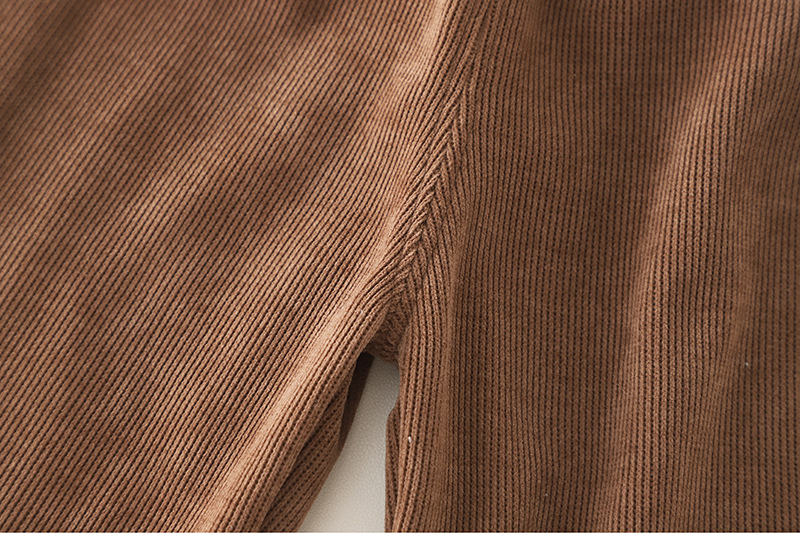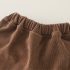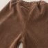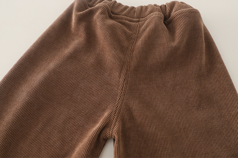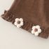 – Pantalon din material tip catifea cafenie, cu talie elastică pentru confort maxim. Cracii sunt decorați cu floricele 3D care se asortează cu detaliile cardiganului și adaugă un finisaj de poveste. Marginile îndoite oferă un plus de farmec și feminitate.