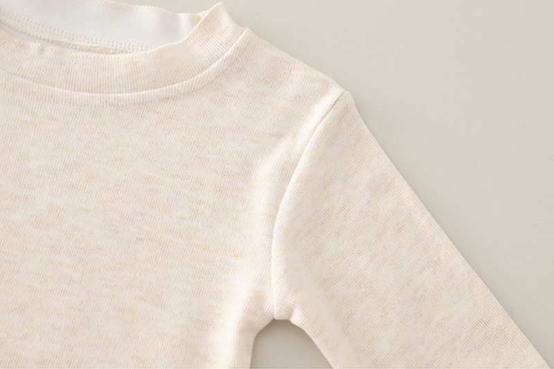 – Bluză în culoare écru, cu croială simplă și material moale, confortabil. Este ideală ca strat de bază sub cardigan și completează lookul delicat al setului.