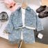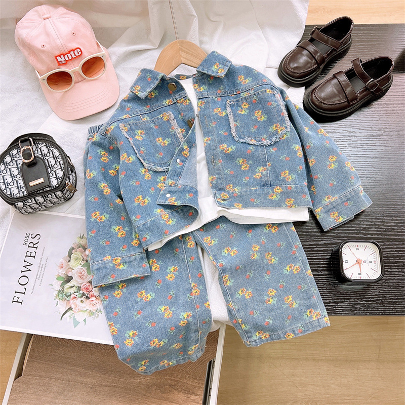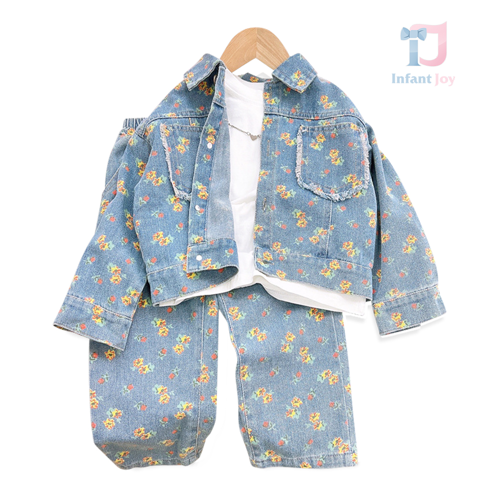 🌼 Set din denim stilat din 2 piese pentru fetiță, care combină designul clasic din denim cu un delicat accent floral.