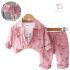 – Jachetă ușoară cu guler clasic, confecționată din material de bumbac de înaltă calitate, de culoare roz, decorată cu mici flori. Modelul are închidere frontală cu nasturi, mâneci lungi cu manșete elastice și buzunare funcționale cu clapetă, care oferă un aspect finisat și elegant. Potrivită pentru sezonul de primăvară-toamnă și pentru zilele mai răcoroase.
