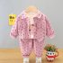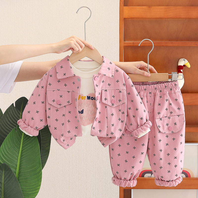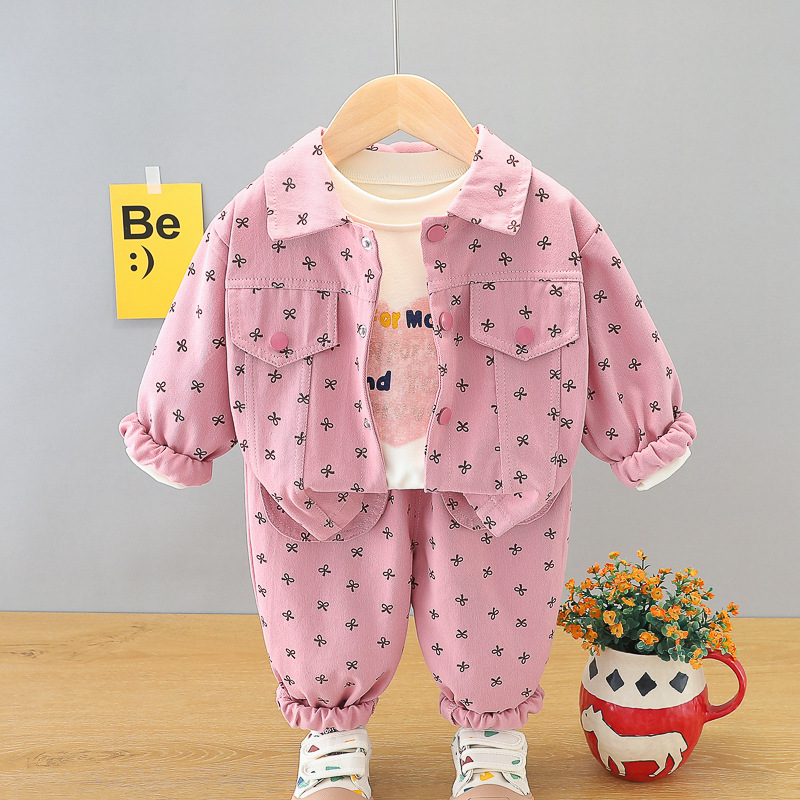 Set din denim de 3 piese cu guler clasic și imprimeu de efect Be Happy Pink