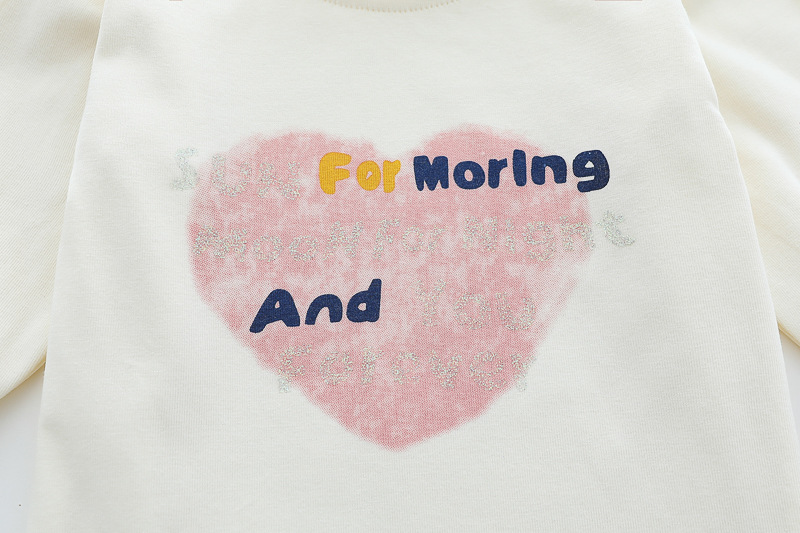 – Bluză albă din jerseu, cu inscripție veselă imprimată în culori vii și un motiv rotund roz în centru. Materialul moale și croiala lejeră o fac ideală pentru purtare zilnică.