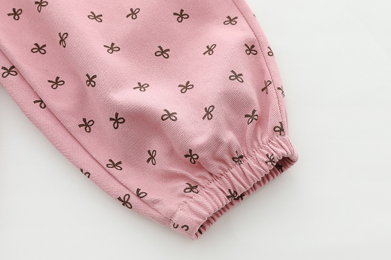 – Pantaloni în același imprimeu ca geaca – cu elastic în talie și la glezne și croială lejeră pentru confort deplin. Imprimeurile cu fundițe sunt reluate și aici – pentru un set complet.
