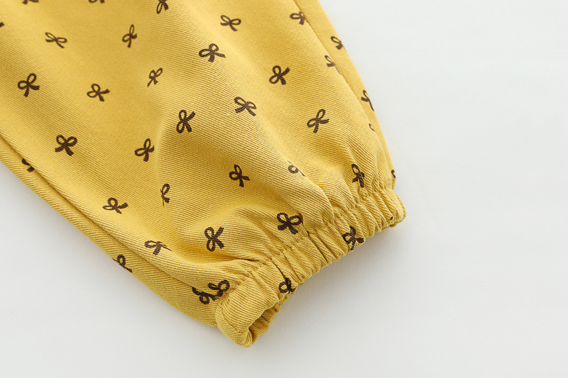 – Pantaloni în același imprimeu ca jacheta, cu elastic în talie și la glezne, și croială lejeră – pentru libertate de mișcare. Imprimeurile cu fundițe sunt reluate și aici – pentru un look complet.
