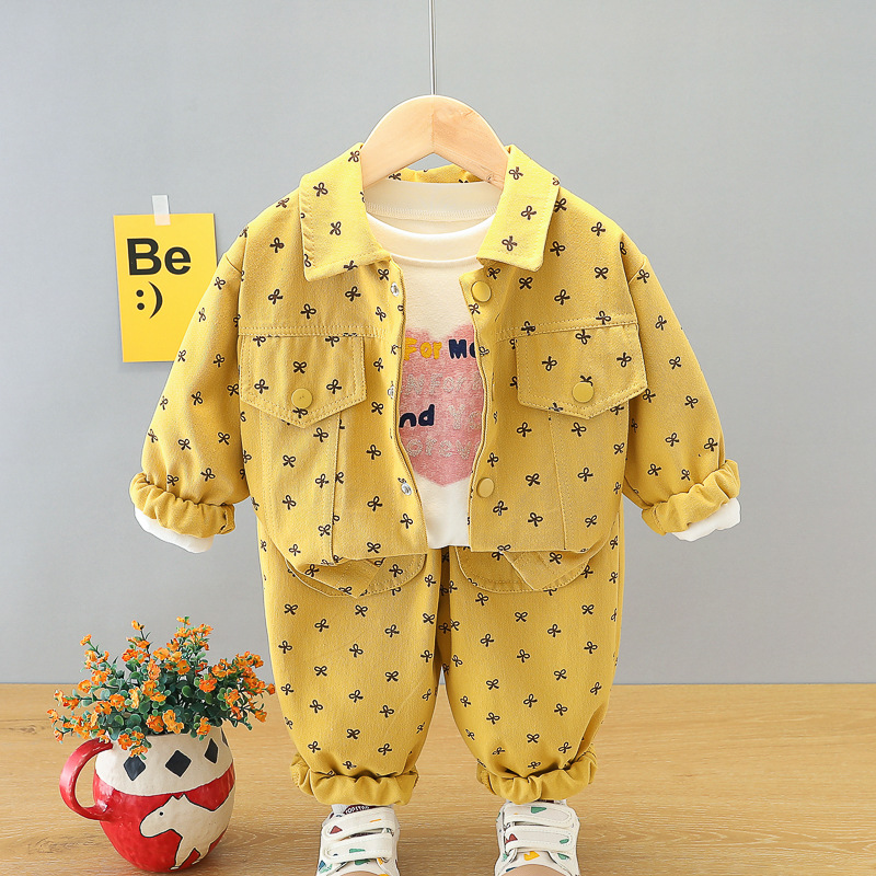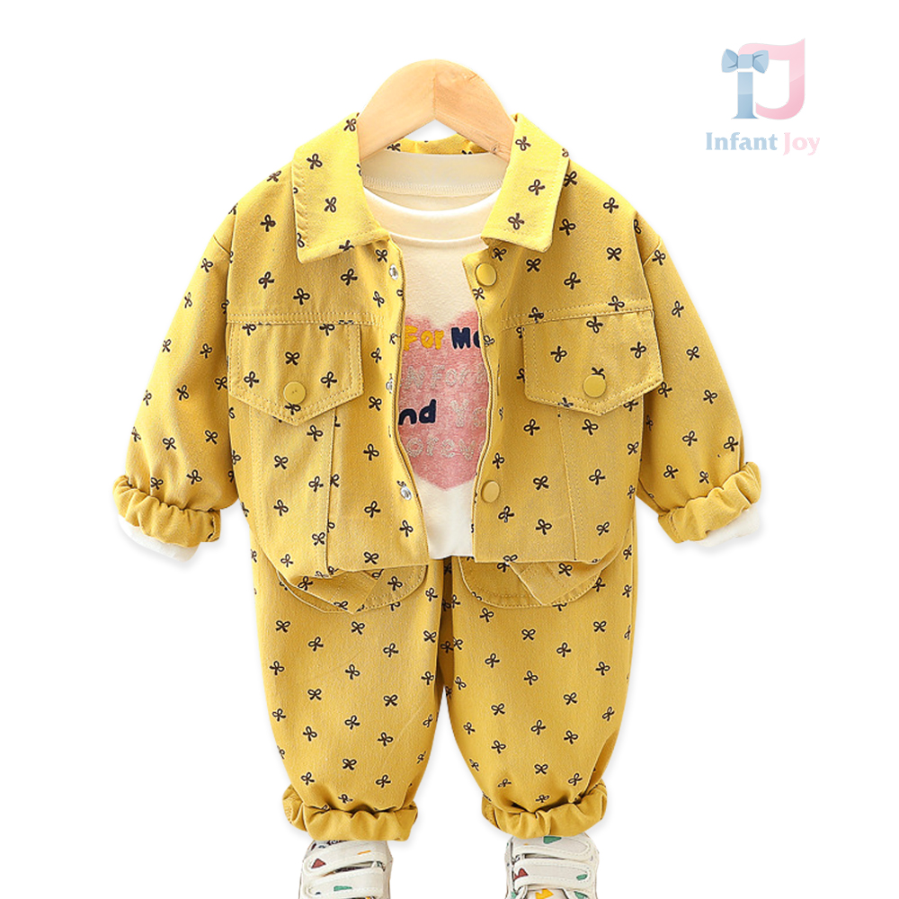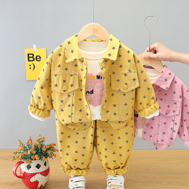 • Set din denim de 3 piese cu guler clasic și imprimeu de efect Be Happy Pink