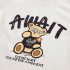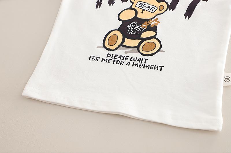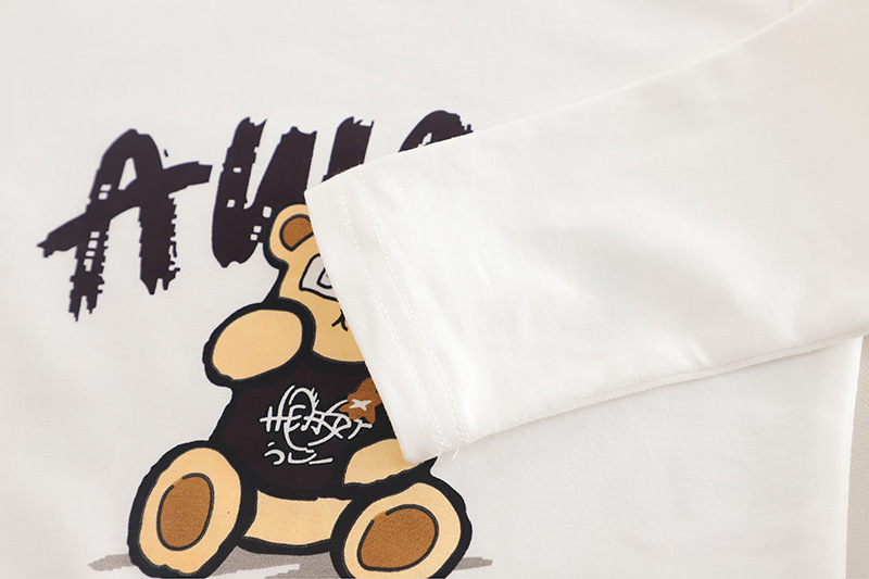 – Bluză din bumbac cu mânecă lungă, de culoare albă. Modelul are o croială clasică și un imprimeu colorat cu ursuleț în față, care adaugă o notă copilăroasă și un contrast plăcut elementelor din denim.
