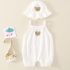 🐻Salopetă albă + bretele elastice și aplicație din pluș în formă de ursuleț cusută pe față.