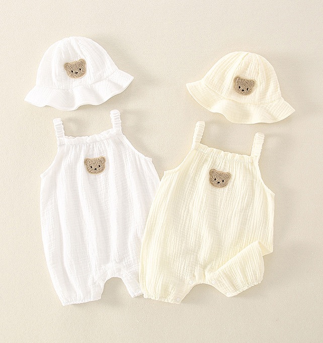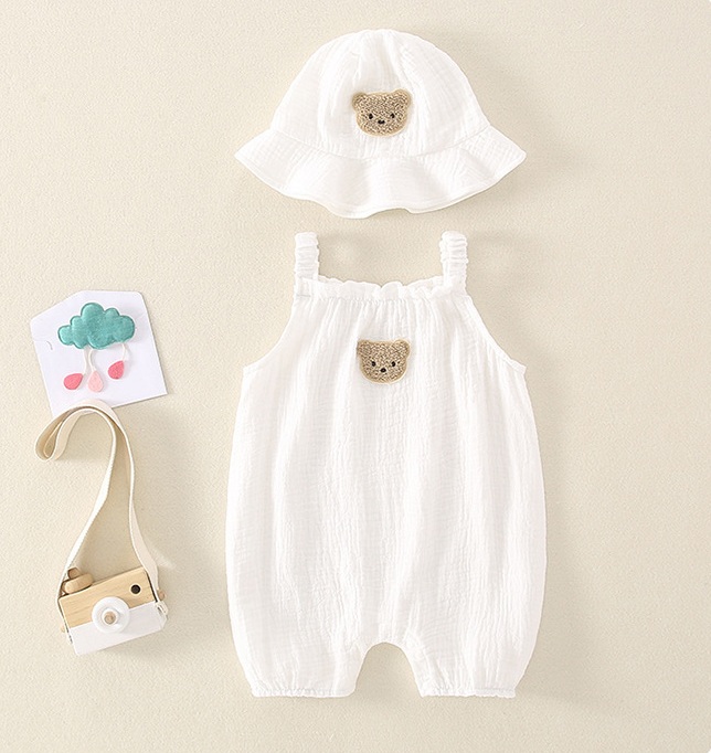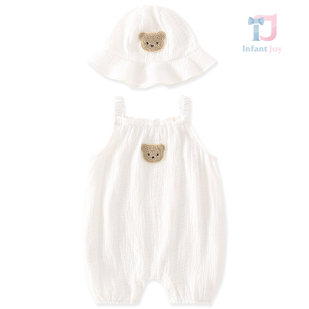 • Set de 2 piese din muselină cu pălărie Baby Bear Vanilla