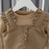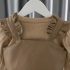 – Bluză rib din material de înaltă calitate, în culoare ciocolatie. Model cu mâneci bufante din tulle fin și fundițe la coate – o bază stilată și delicată.