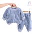 -Bluză confecționată din pluș pufos, de culoare albastru proaspăt, delicată cu pielea copilului. Ornamentele în relief cu motive de iepurași adaugă un aspect jucăuș și distractiv. Manșetele ripsate oferă confort în timpul purtării.