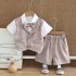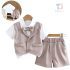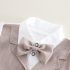 Set elegant de 2 piese cu cămașă cu vestă aplicată și papion, și pantaloni scurți Beige Baron