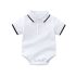 -Body cu guler clasic, de culoare albă, cu accente contrastante la guler și mâneci. Confecționat din material moale și respirabil din bumbac – ideal pentru purtare pe tot parcursul zilei. Închidere cu nasturi în față și capse în partea de jos – pentru schimbarea rapidă a scutecului. Design elegant și curat, care oferă un aspect îngrijit și rafinat.