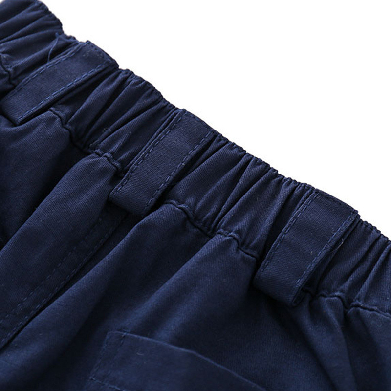 -Pantaloni scurți în culoare bleumarin, din material ușor. Cu talie elastică, nasture decorativ și bride pentru curea. Model versatil și stilat, ușor de asortat cu alte articole vestimentare.