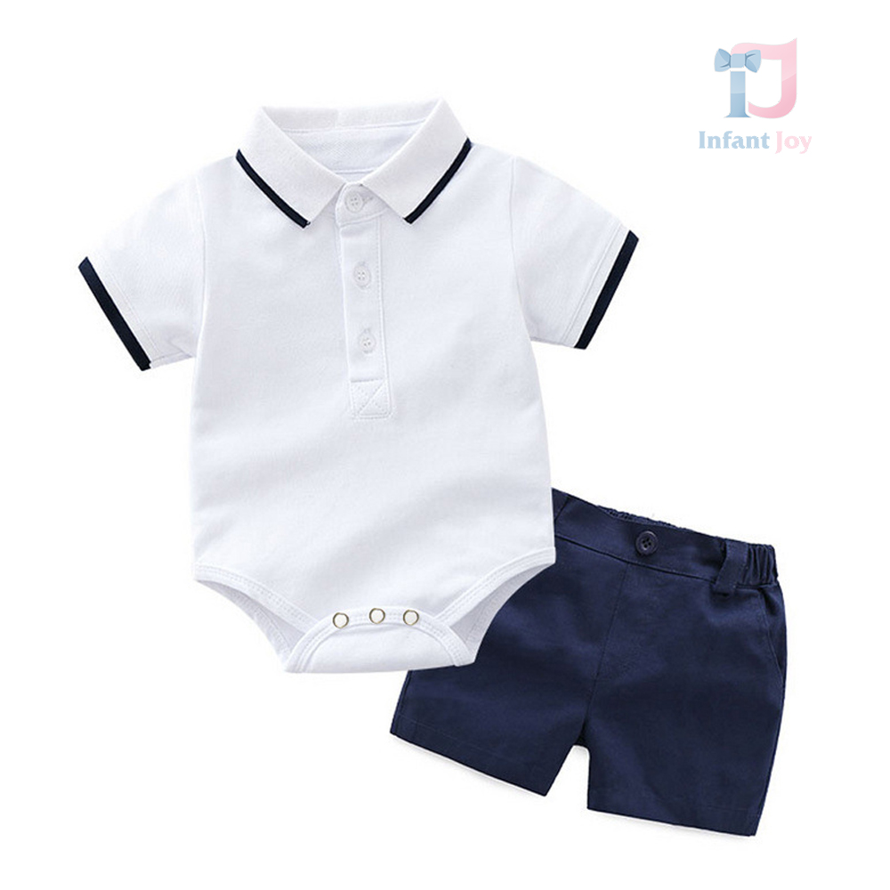 Set elegant de 2 piese din body cu guler clasic și pantaloni scurți Polo Prince White